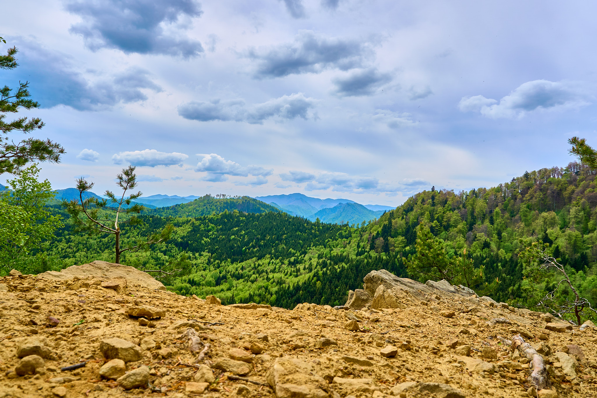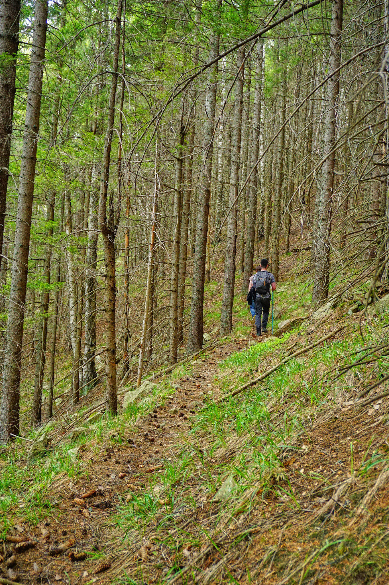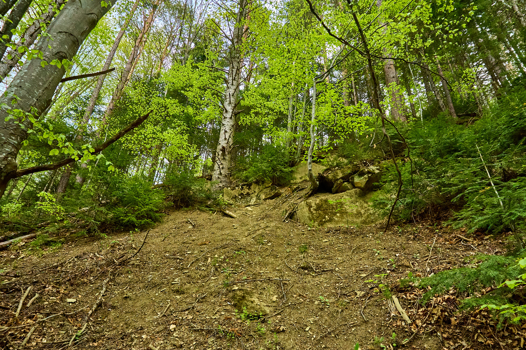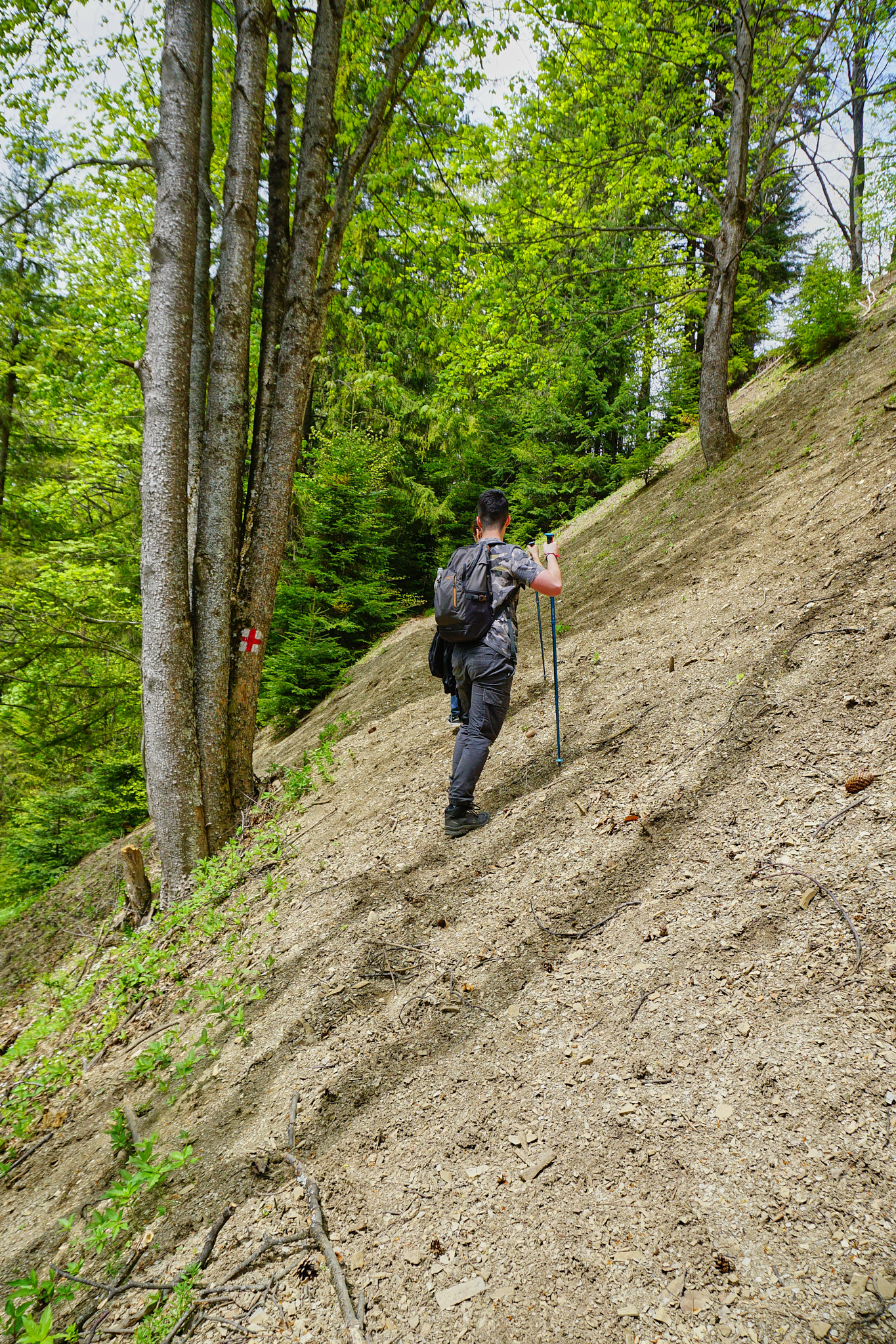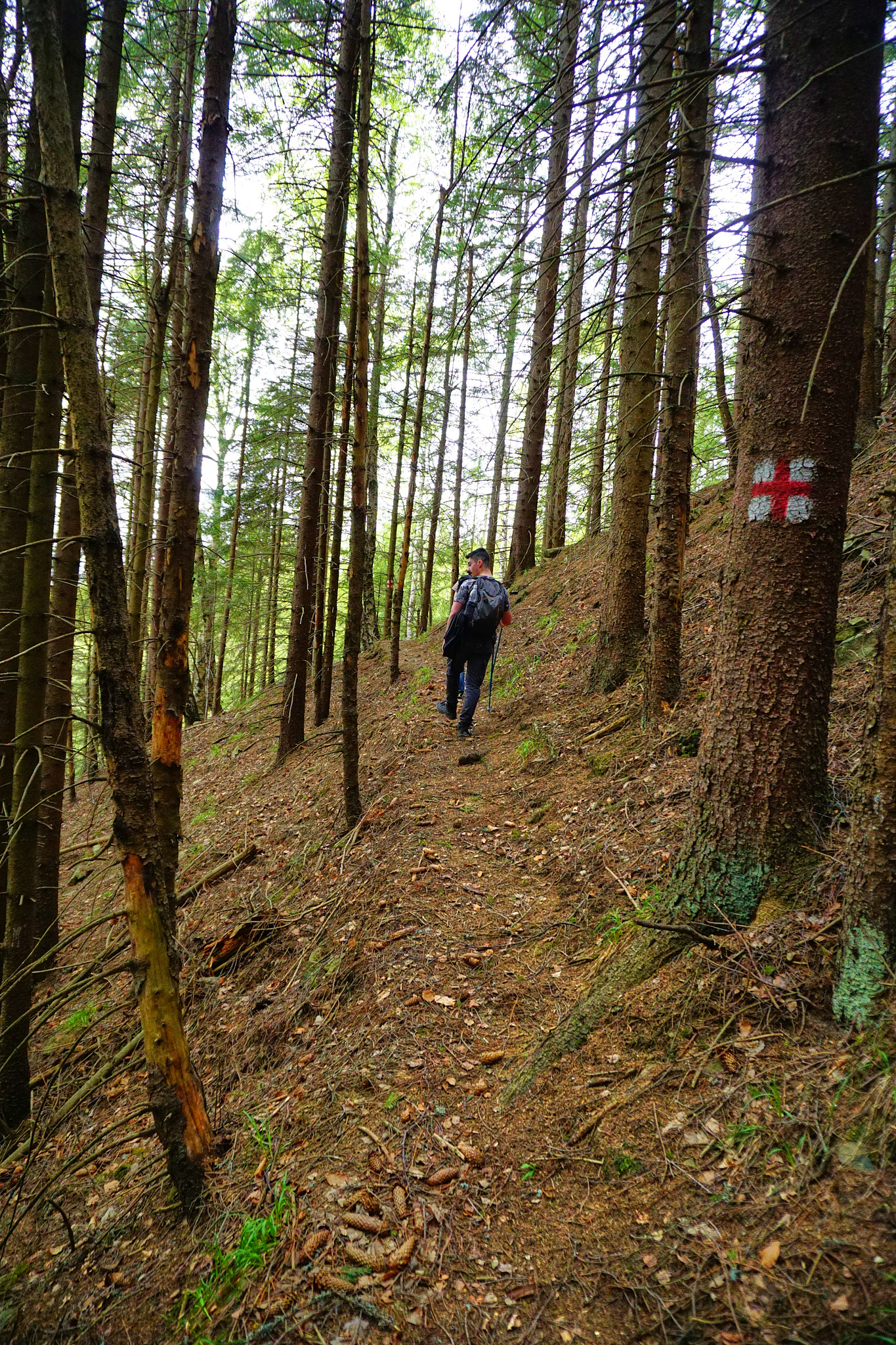 Traseul începe de la Pensiunea Coca (Soveja), lângă postul de pompieri, unde există și loc de parcare. Intrarea pe traseu se face la bariera ce deschide drumul forestier pe care am mers aproximativ 40 minute unde a început traseul spre primul punct belvedere Șezătoarea Lupilor prin pădure. Continuând urcarea, dificultatea a crescut din cauza copacilor doborâți de furtuni, dar nu au fost o problemă. Liniștea și vegetația ne-au făcut să facem mai multe opriri pentru a admira frumusețea naturii. Atenția însă trebuie să fie crescută datorită urșilor ce trăiesc în zonă, mai ales că am fost avertizați că în acea dimineață au fost văzuți doi urși chiar lângă postul de pompieri. După aproximativ 1h am ajuns la Șezătoarea Lupilor, ce ne-a oferit o priveliște splendidă unde am și făcut popasul ce ne pregătea de dificultatea ce avea să urmeze.