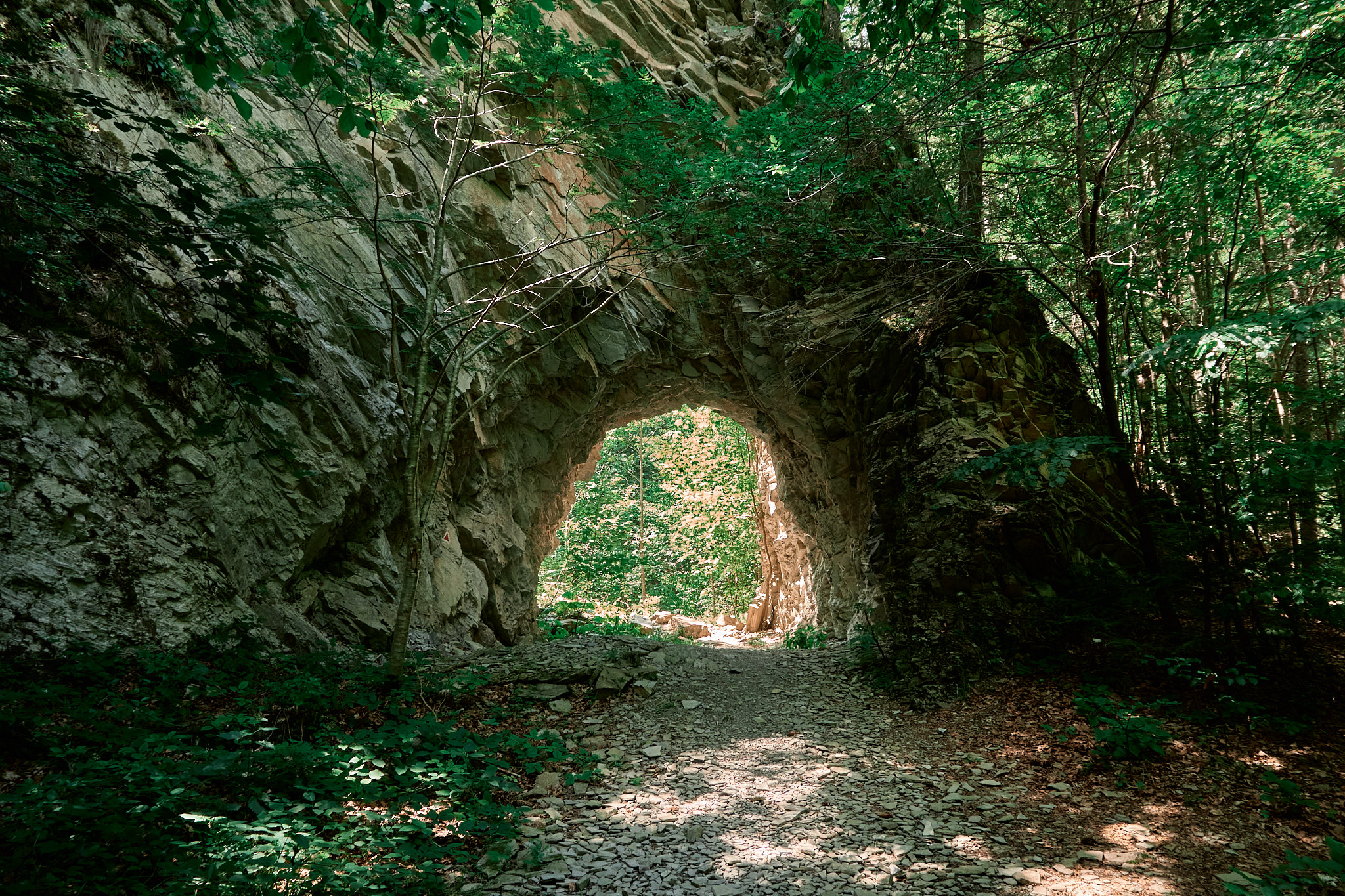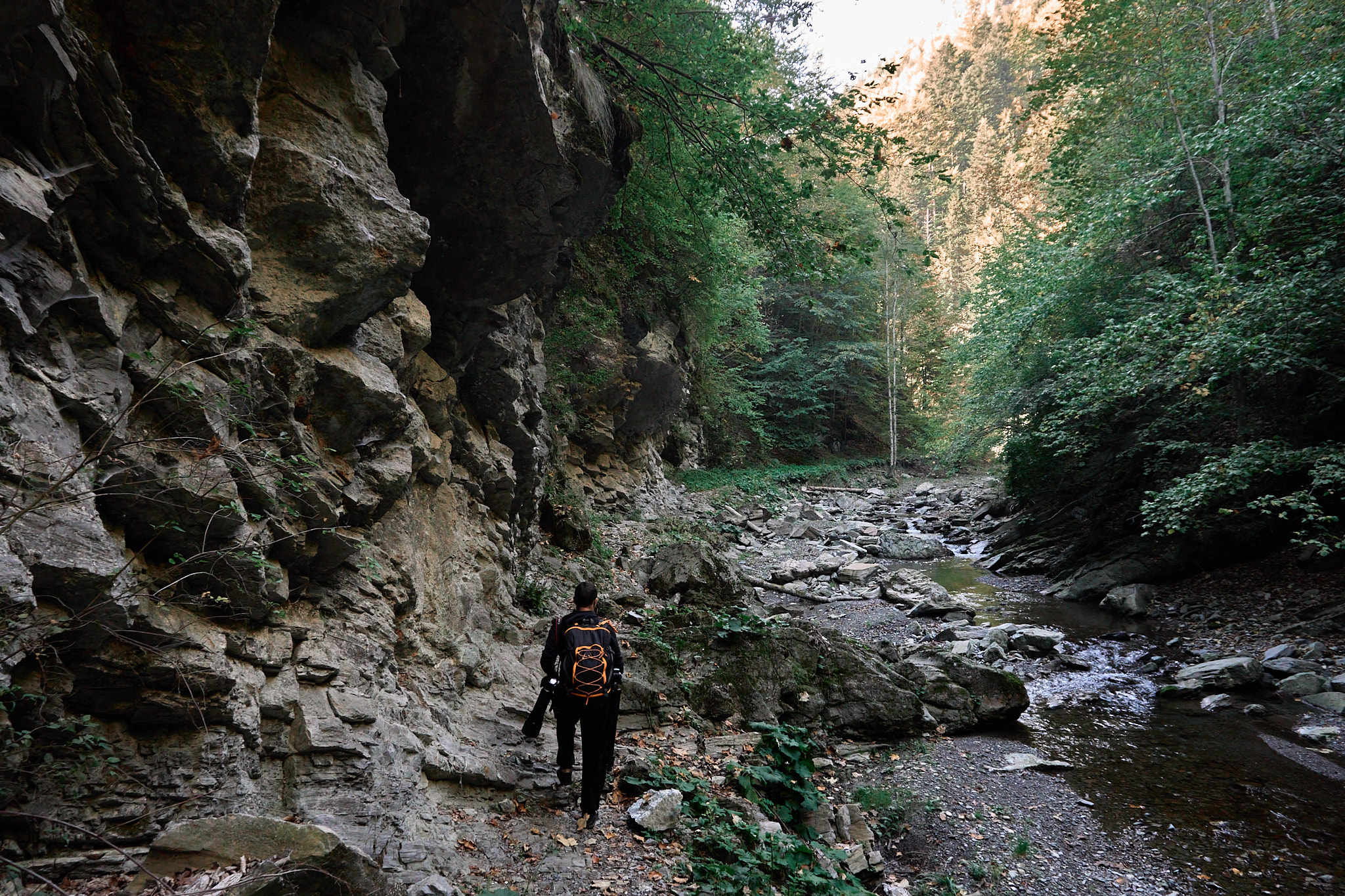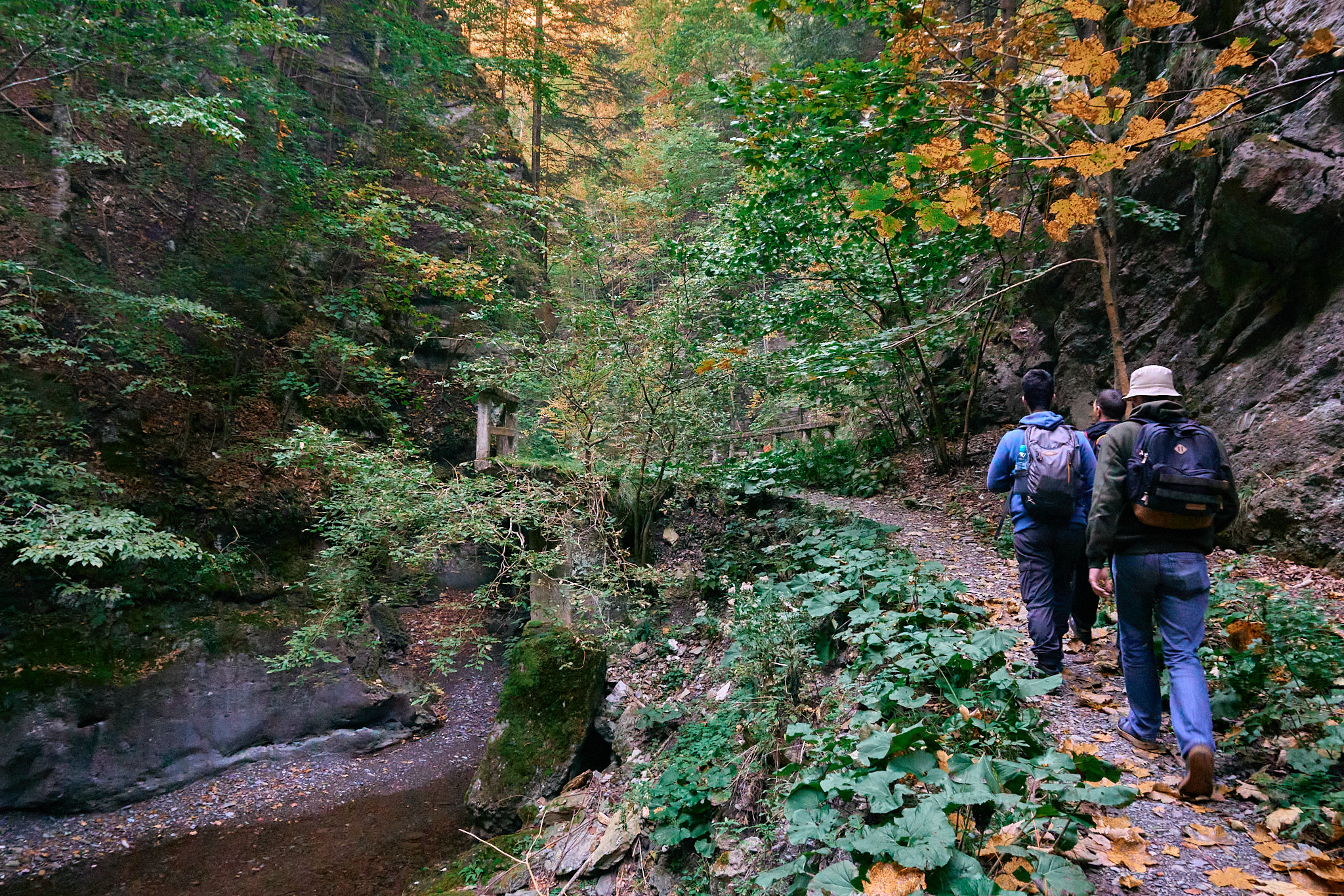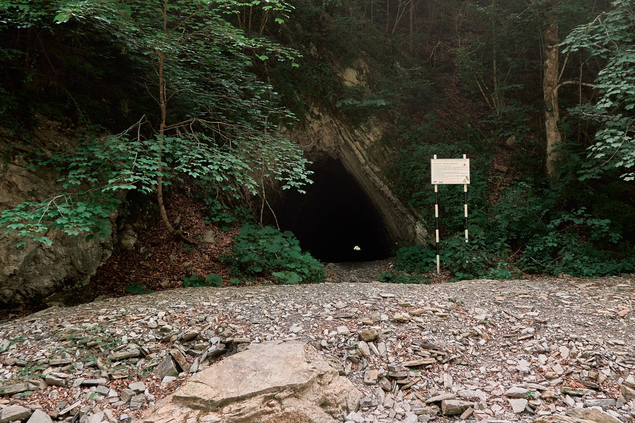 Am intrat pe traseu în jurul orei 8, roua dimineții și-a făcut simțită prezența, deci ar fii bine să ai bocanci de munte cu talpă aderentă dacă ești matinal. Obiectivul nostru a fost să ajungem la tunelul mare, dar înainte de acesta ne-am oprit cateva minute la cabana din pădure aflată la marginea râului. Sunt puse la dispoziție lemne pentru grătar și o zona cu mese din lemn dacă sunt doritori de un picnic în natură. De menționat că nu vei merge doar prin pădure, sunt porțiuni cu stânci și arcade ce îți vor menține entuziasmul ridicat și nu te vei plictisii. În funcție de perioada anului în care alegi să te aventurezi aici, vei întâlni diferite specii de flori și viețuitoare mici. Toamna se pot auzii cerbii și dacă vrei să-i și fotografiezi, va trebuii să te abați de la traseu pentru a intra adânc în padure.