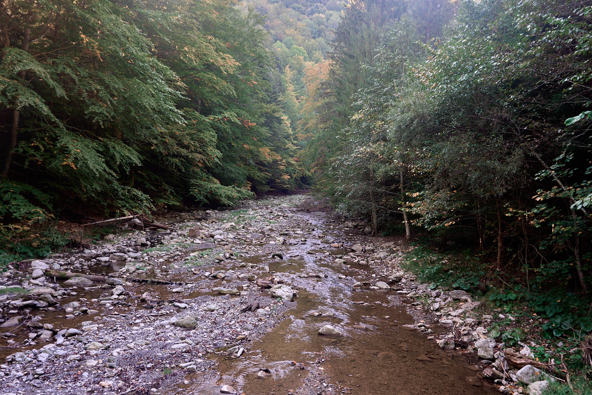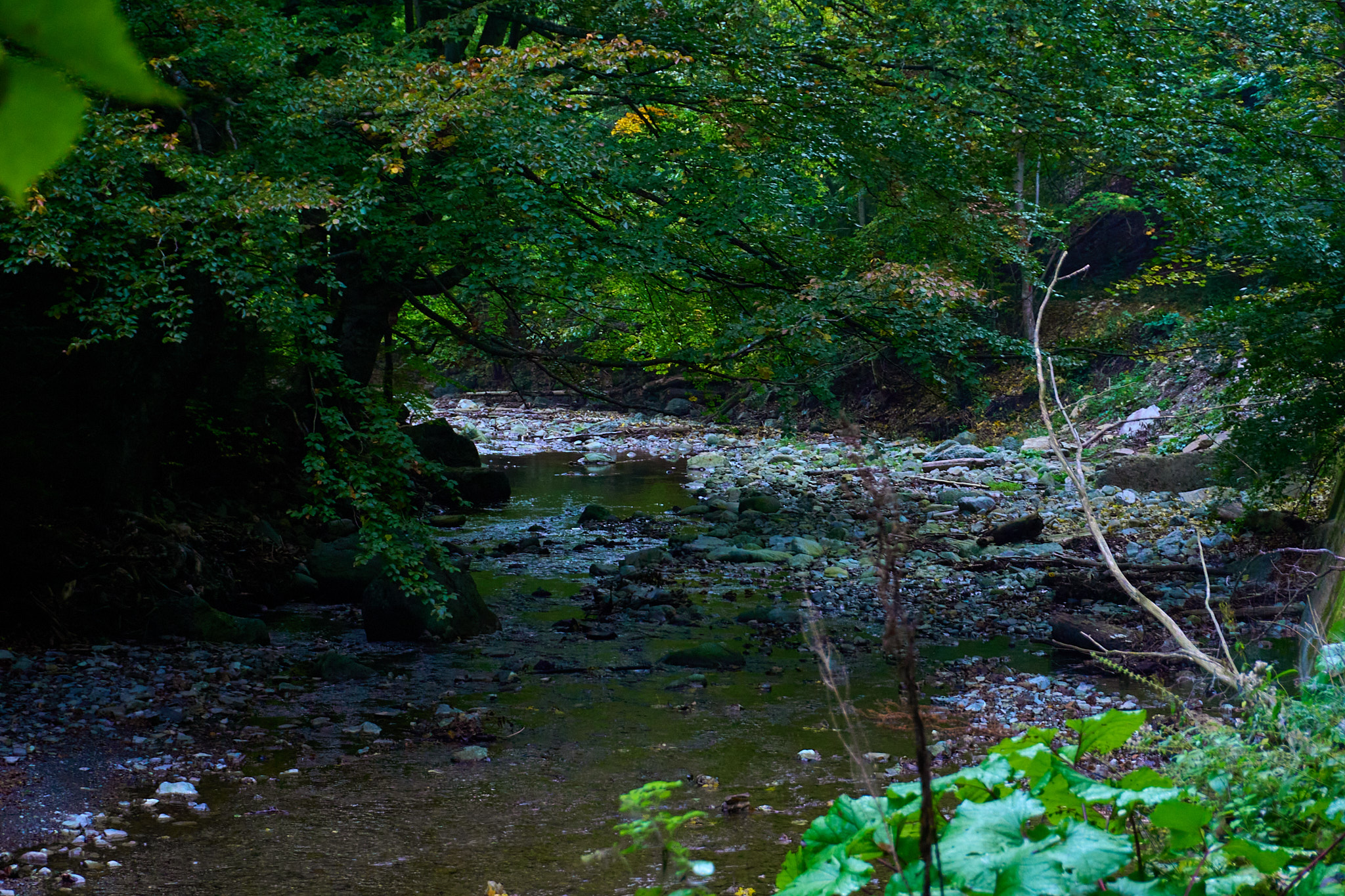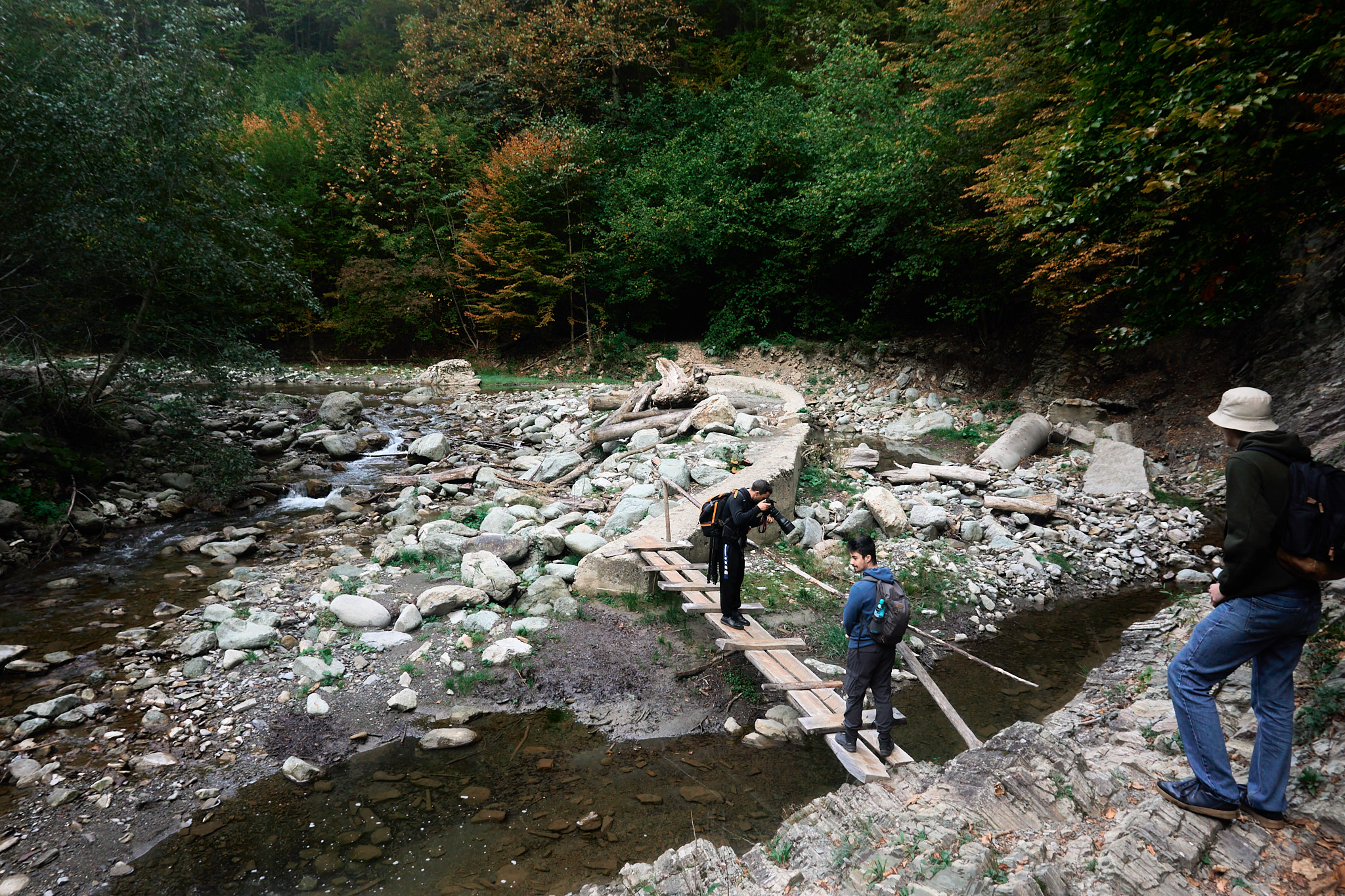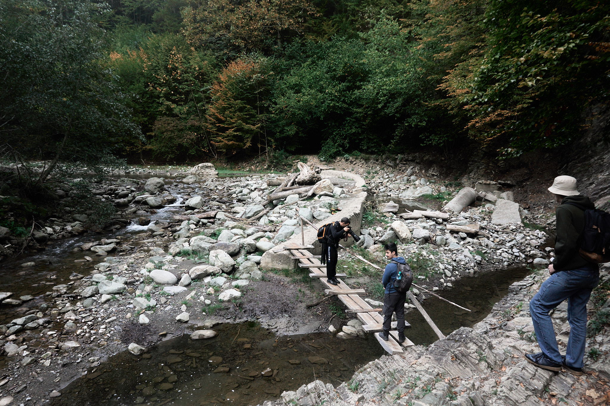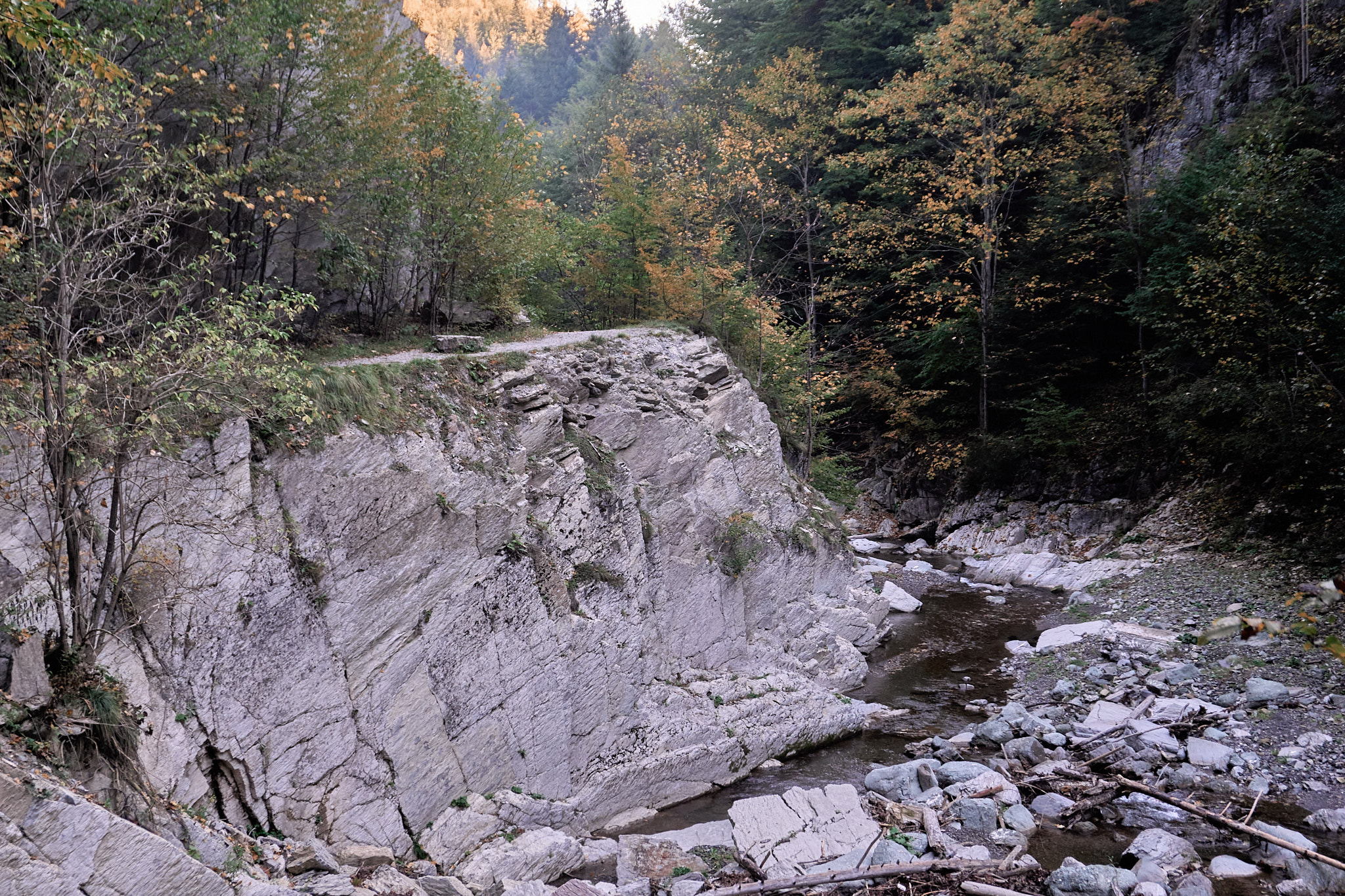 Am intrat pe traseu în jurul orei 8, roua dimineții și-a făcut simțită prezența, deci ar fii bine să ai bocanci de munte cu talpă aderentă dacă ești matinal. Obiectivul nostru a fost să ajungem la tunelul mare, dar înainte de acesta ne-am oprit cateva minute la cabana din pădure aflată la marginea râului. Sunt puse la dispoziție lemne pentru grătar și o zona cu mese din lemn dacă sunt doritori de un picnic în natură. De menționat că nu vei merge doar prin pădure, sunt porțiuni cu stânci și arcade ce îți vor menține entuziasmul ridicat și nu te vei plictisii. În funcție de perioada anului în care alegi să te aventurezi aici, vei întâlni diferite specii de flori și viețuitoare mici. Toamna se pot auzii cerbii și dacă vrei să-i și fotografiezi, va trebuii să te abați de la traseu pentru a intra adânc în padure.